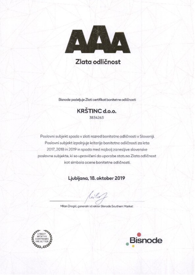 Bisdone - Zlati certifikat AAA